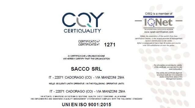 In data 29/09/2021 l’ente di certificazione Certiquality ha rinnovato per Sacco Srl la certificazione relativa all’attuazione…
